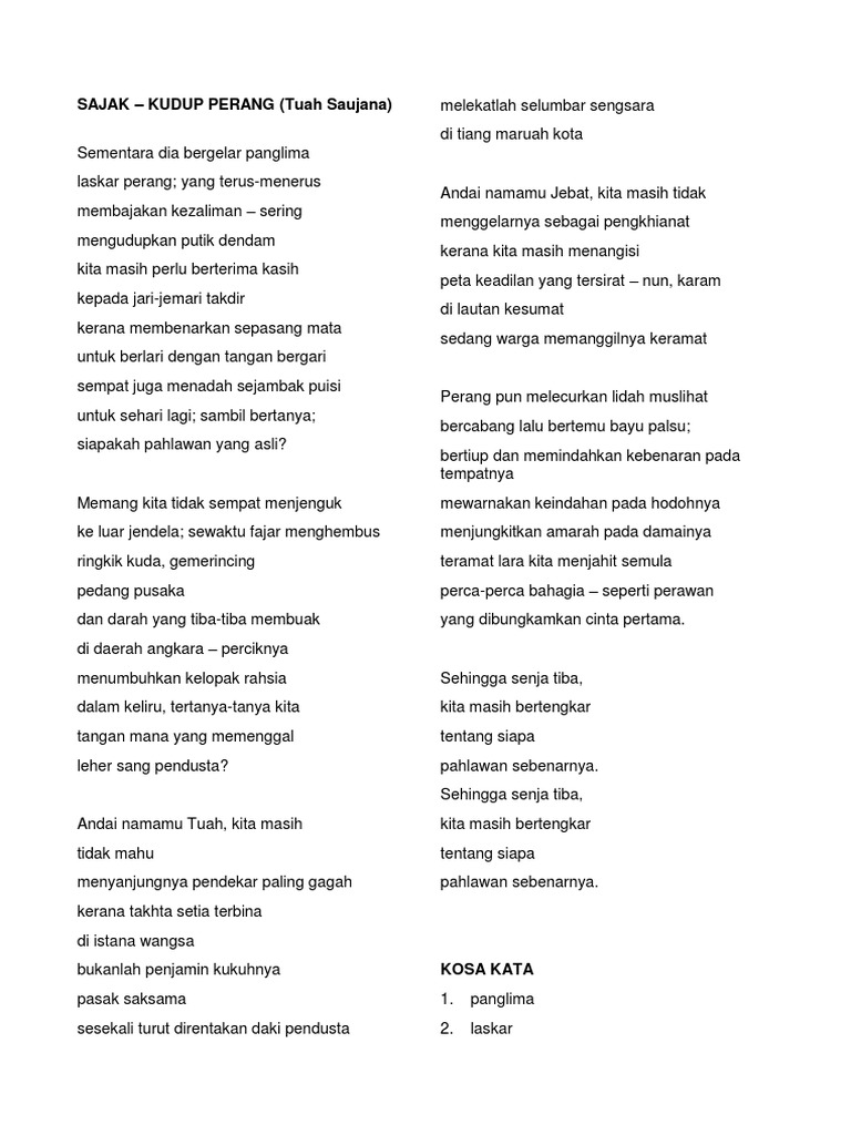 Persoalan Dan Contoh Kudup Perang